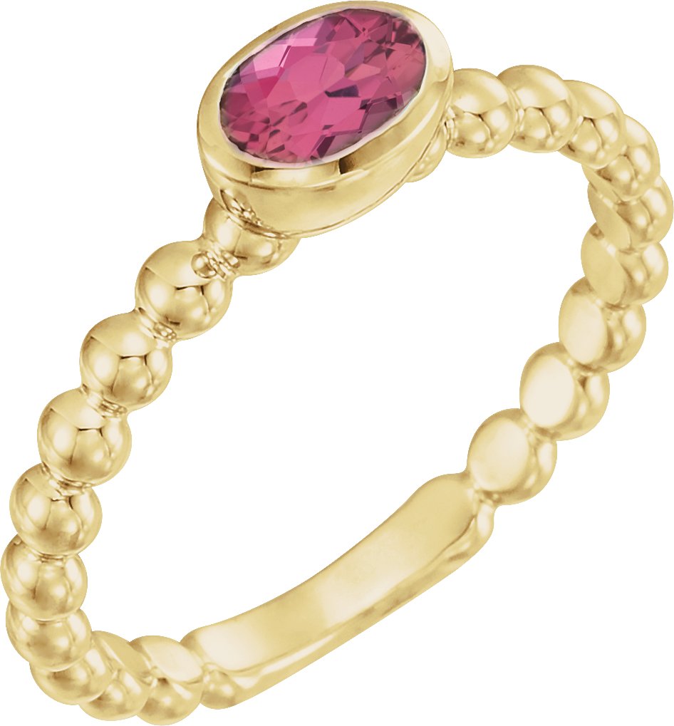 14K Yellow Pink Tourmaline Stackable Family Ring