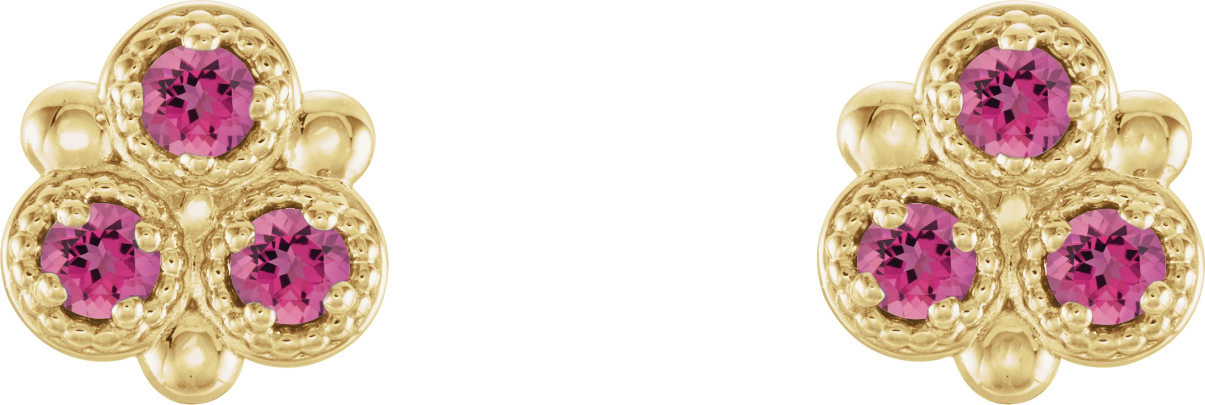 14K Yellow Pink Tourmaline Three Stone Earrings