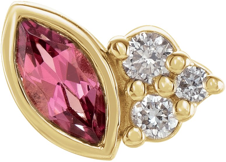 14K Yellow Pink Tourmaline and .03 CTW Diamond Left Earring