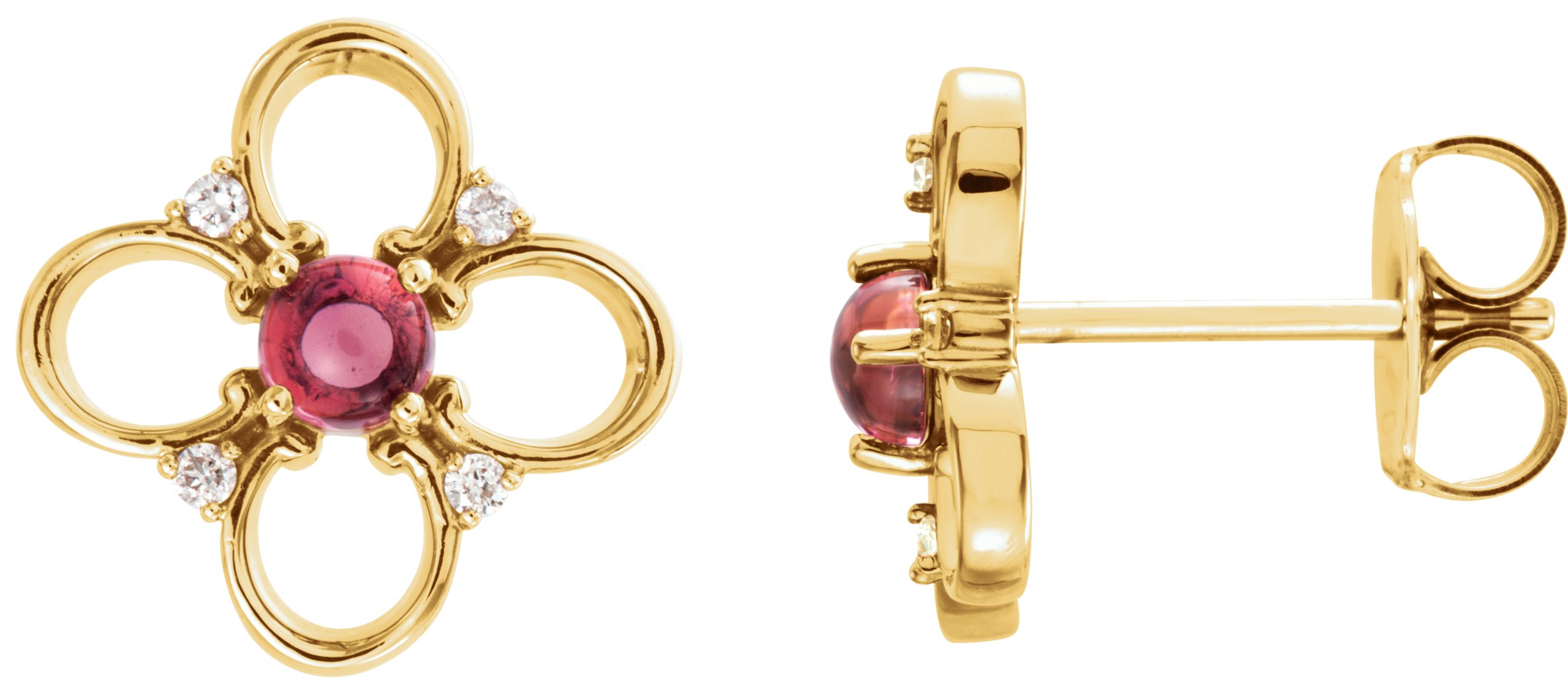 14K Yellow Pink Tourmaline and .04 CTW Diamond Earrings
