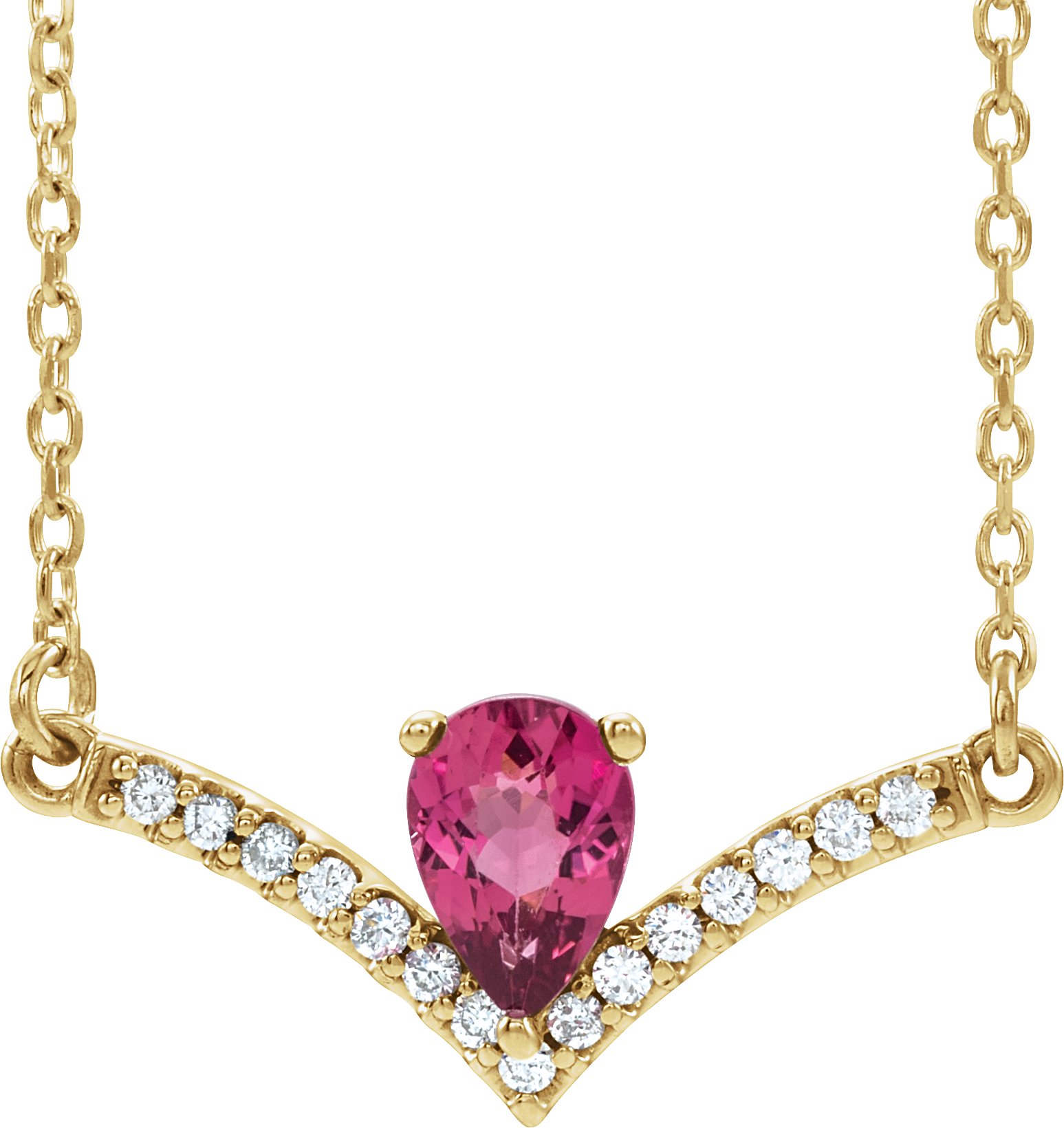 14K Yellow Pink Tourmaline & .06 CTW Diamond 18 inch Necklace