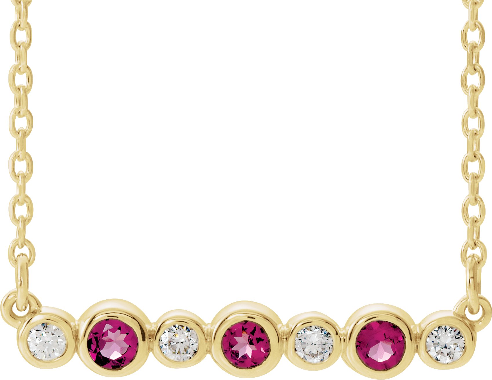 14K Yellow Pink Tourmaline & .08 CTW Diamond Bezel Set Bar 16 18" Necklace Ref. 14204952