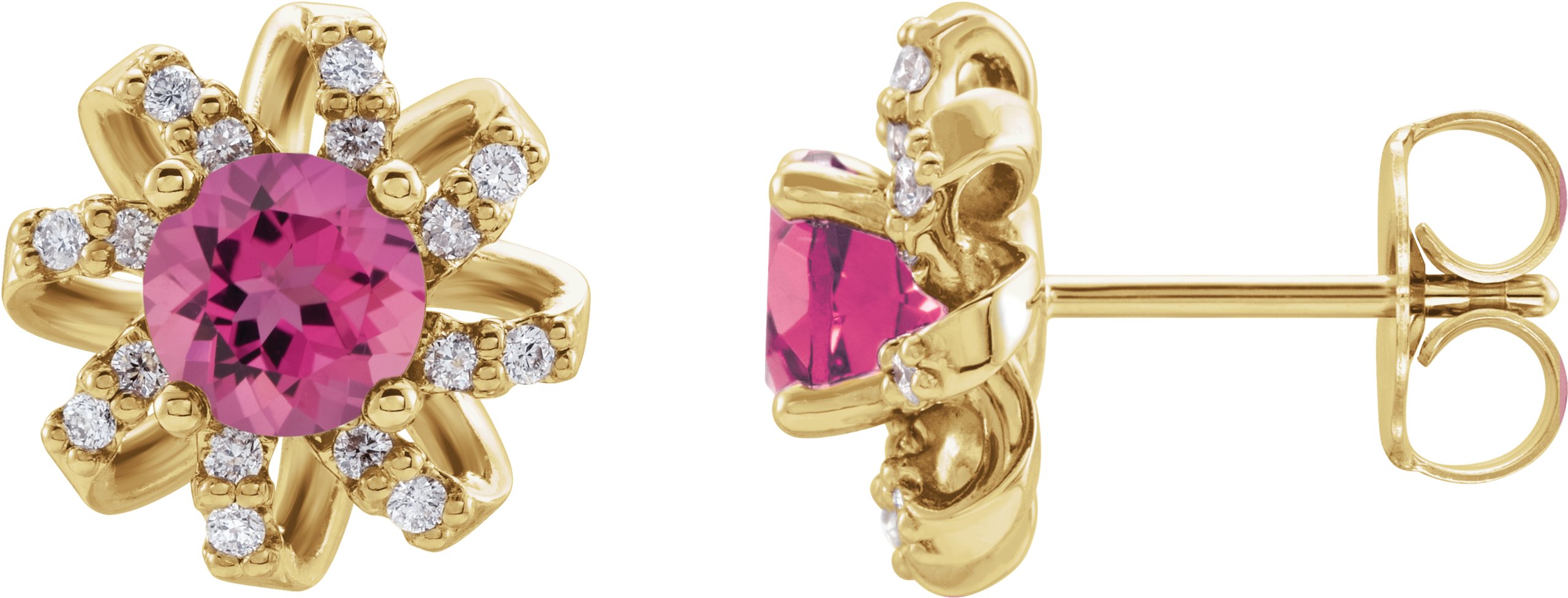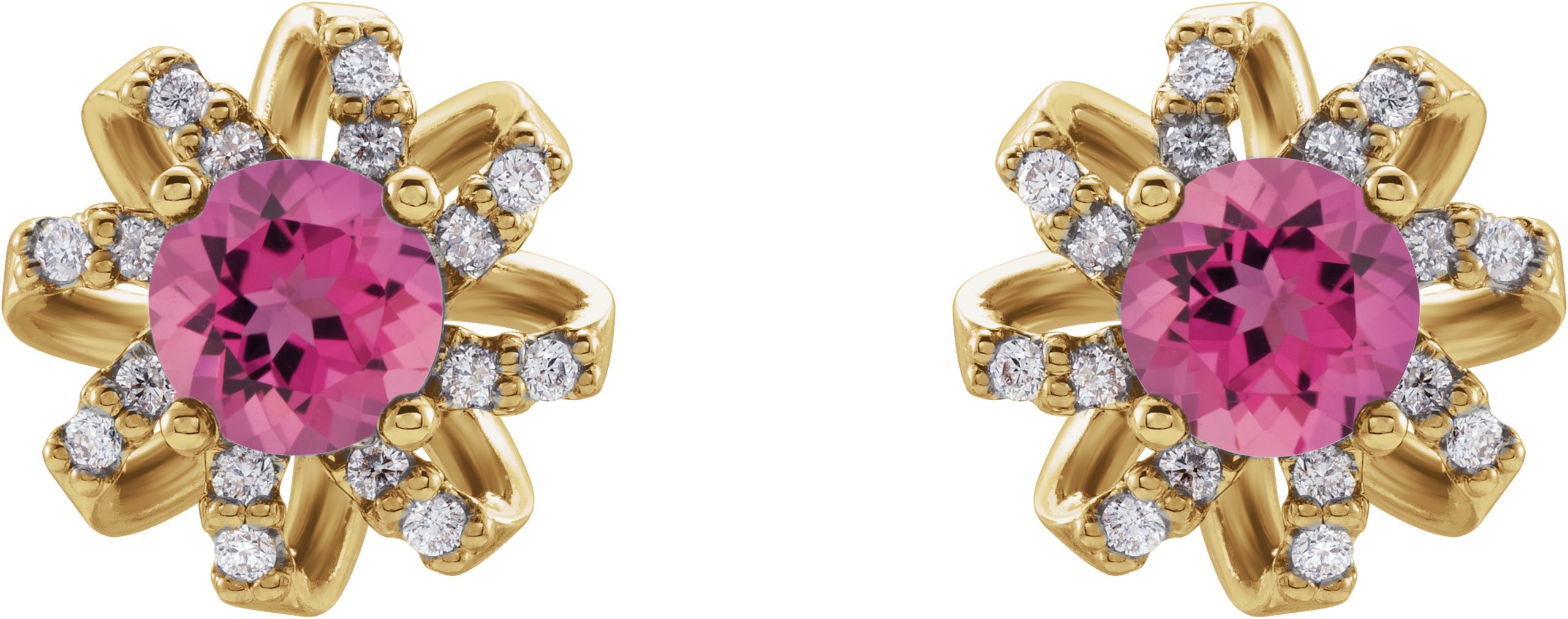14K Yellow Pink Tourmaline and .125 CTW Diamond Halo Style Earrings