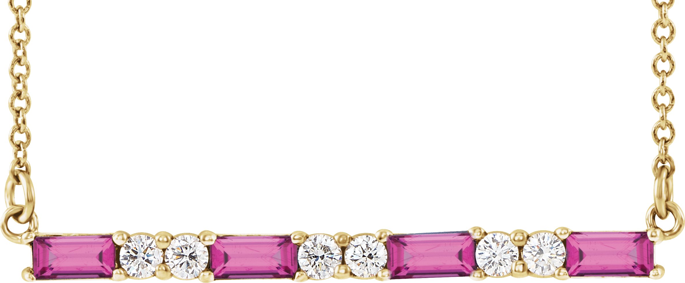14K Yellow Pink Tourmaline & 1/5 CTW Diamond Bar 16 18 inch Necklace