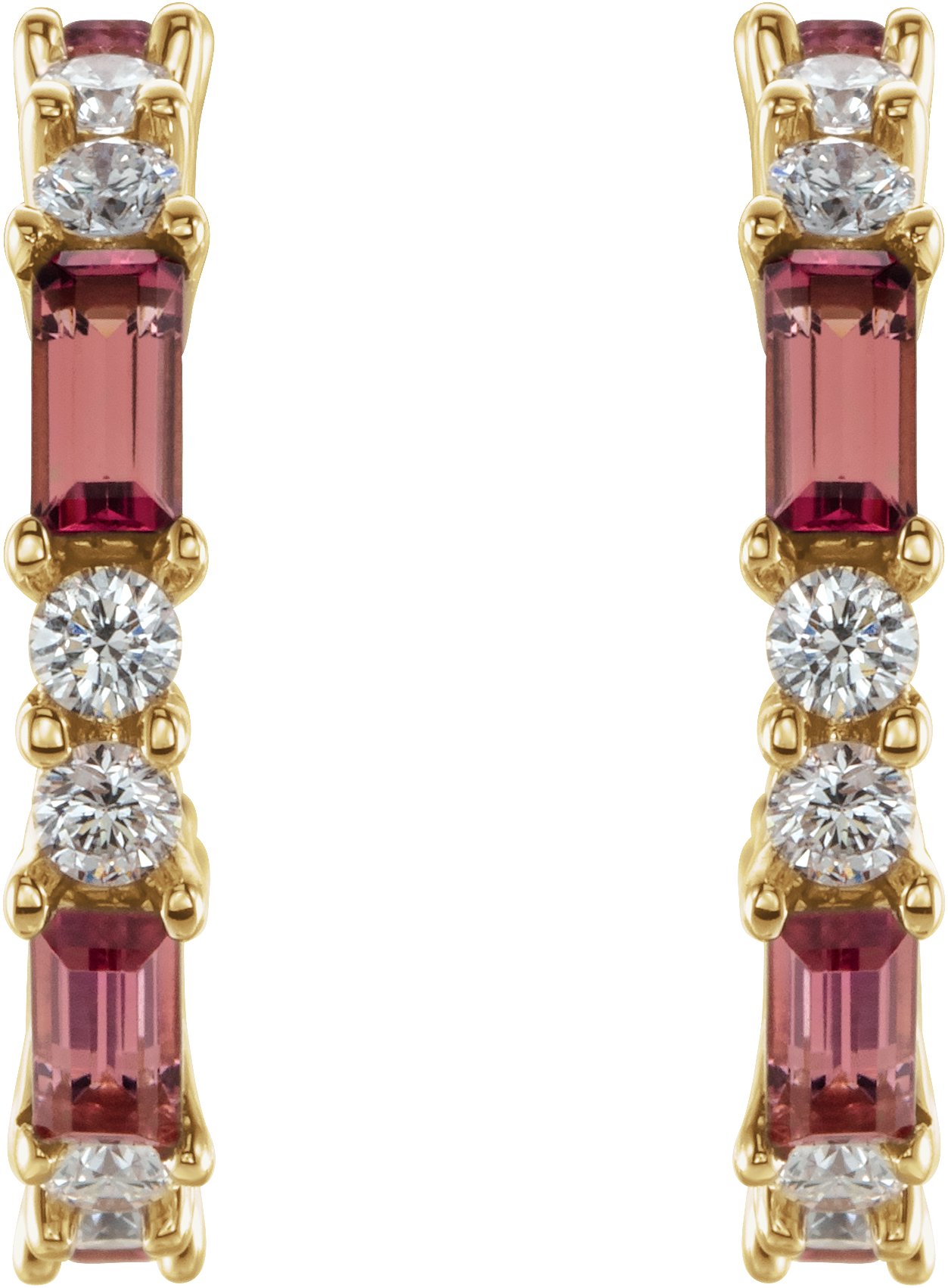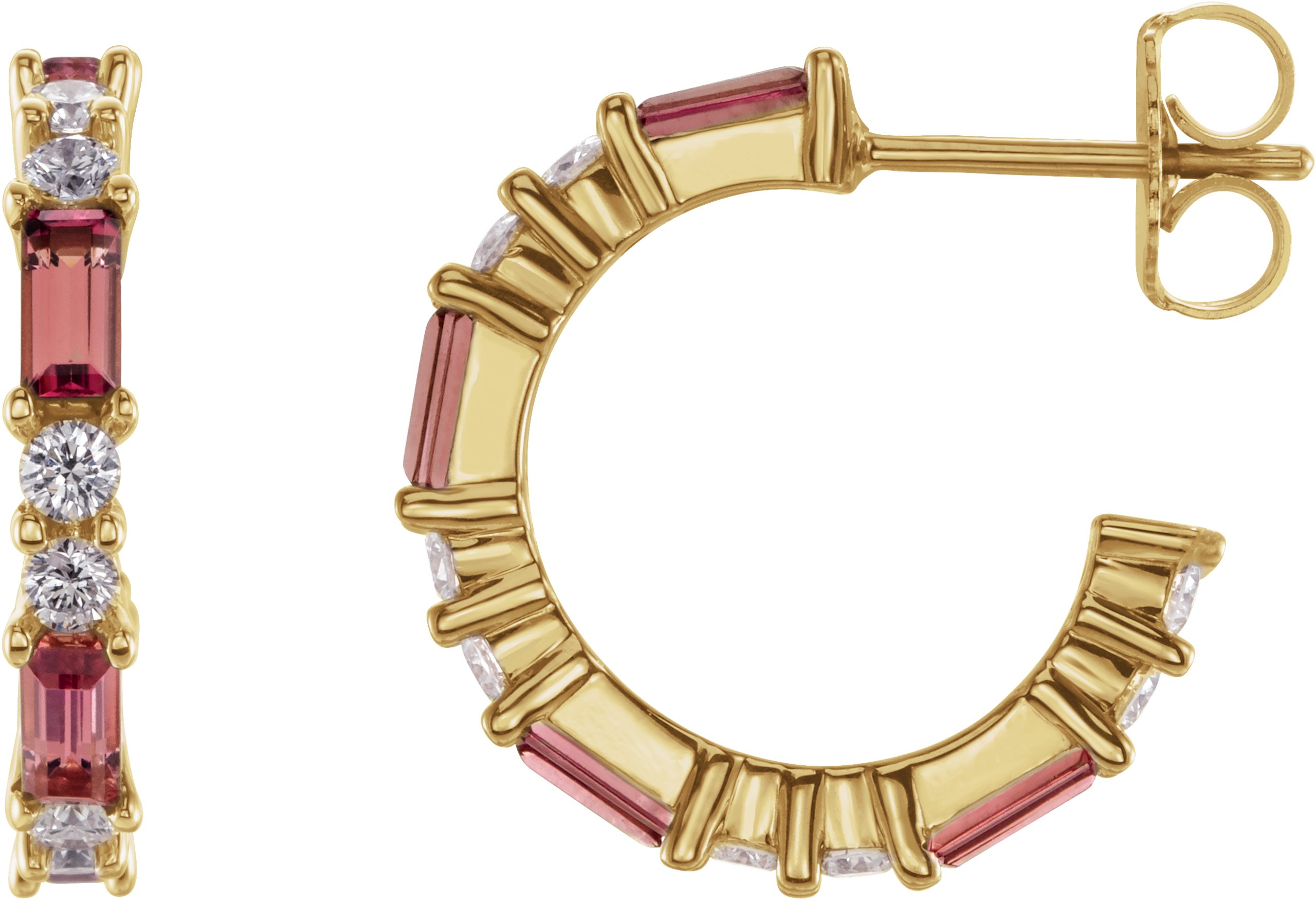 14K Yellow Pink Tourmaline & 1/2 CTW Diamond Earrings