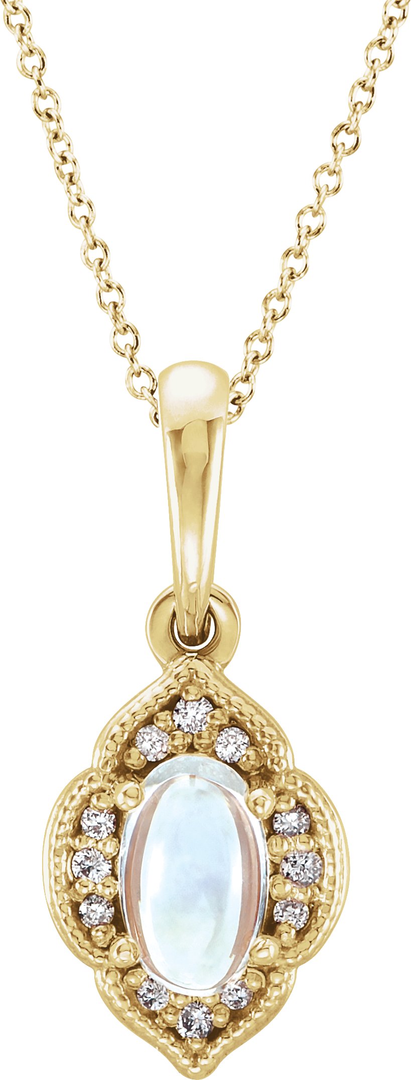 14K Yellow Rainbow Moonstone & .03 CTW Diamond Clover 16 18 inch Necklace