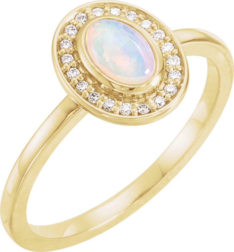 14K Yellow Rainbow Moonstone & 1/10 CTW Diamond Halo Style Ring