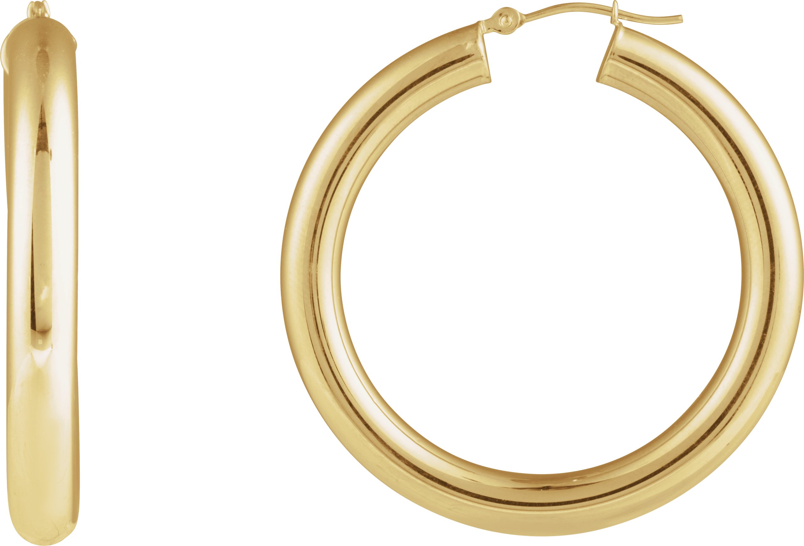 14K Yellow Round Tube 40 mm Hoop Earrings