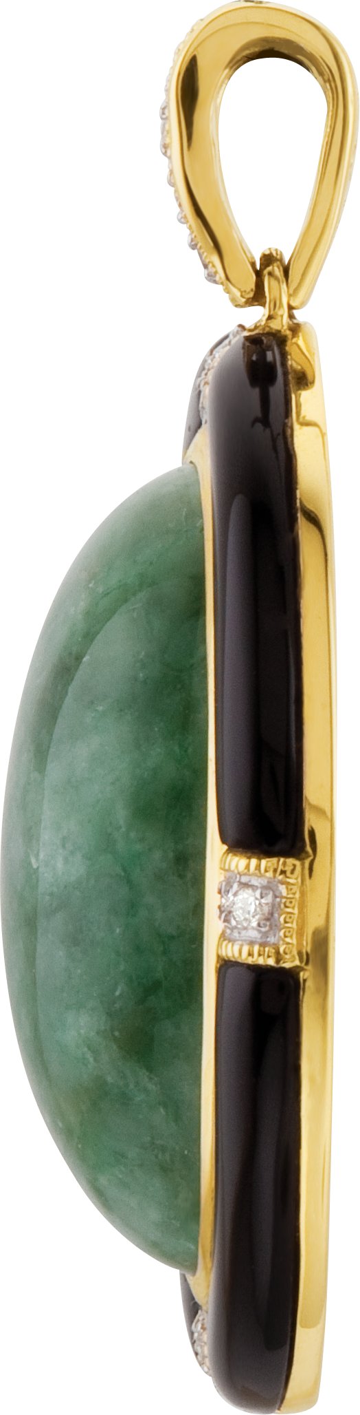 14K Yellow Russian Jadeite, Onyx & .05 CTW Diamond Pendant