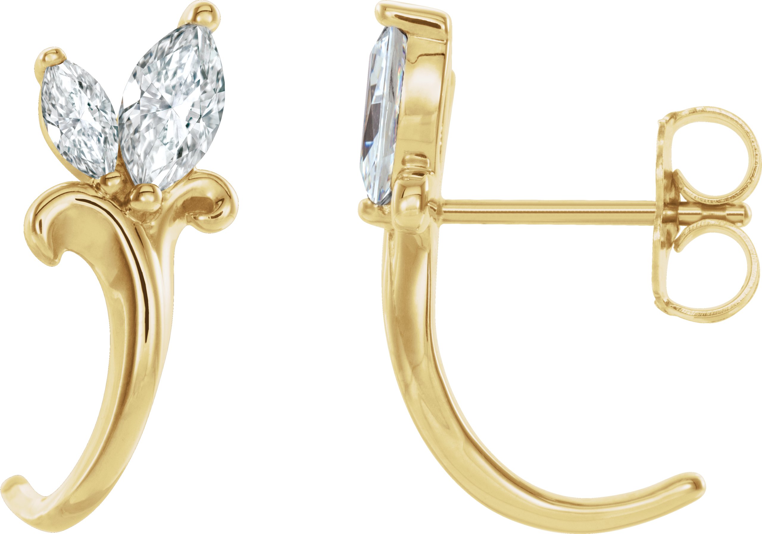 14K Yellow Sapphire Floral Inspired J Hoop Earrings