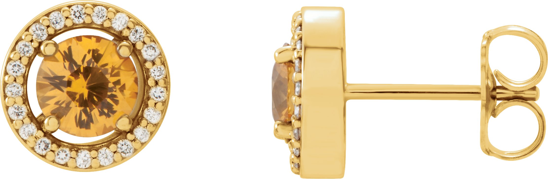 14K Yellow Sapphire & 1/8 CTW Diamond Earrings