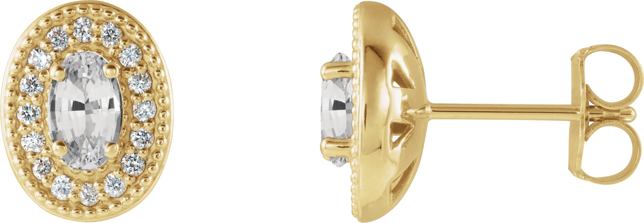 14K Yellow Sapphire & 1/8 CTW Diamond Halo Style Earrings