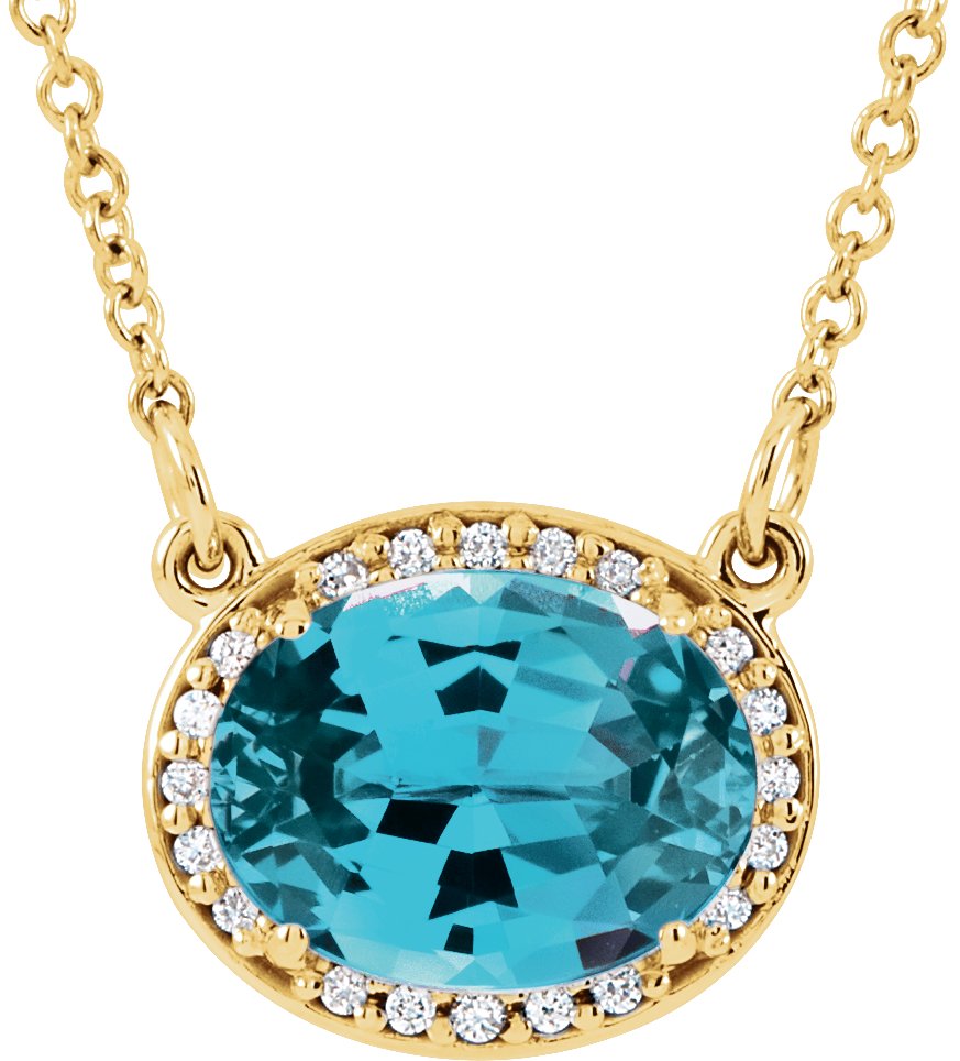 14K Yellow Swiss Blue Topaz & .05 CTW Diamond 16 inch Necklace