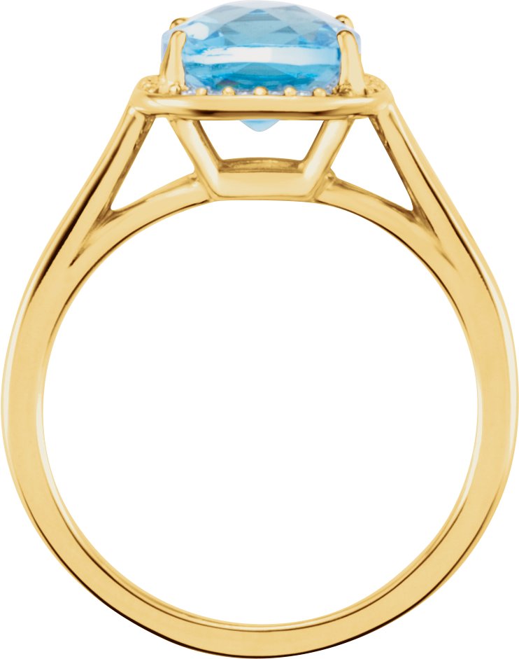 14K Yellow Swiss Blue Topaz & .055 CTW Diamond Halo Style Ring