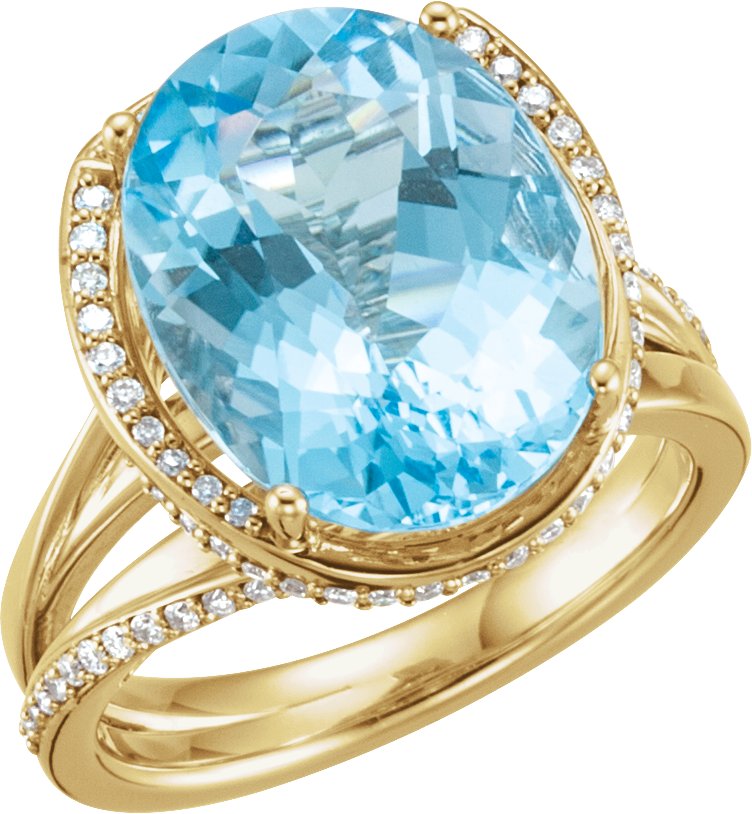 14K Yellow Swiss Blue Topaz and .50 CTW Diamond Spiral Ring