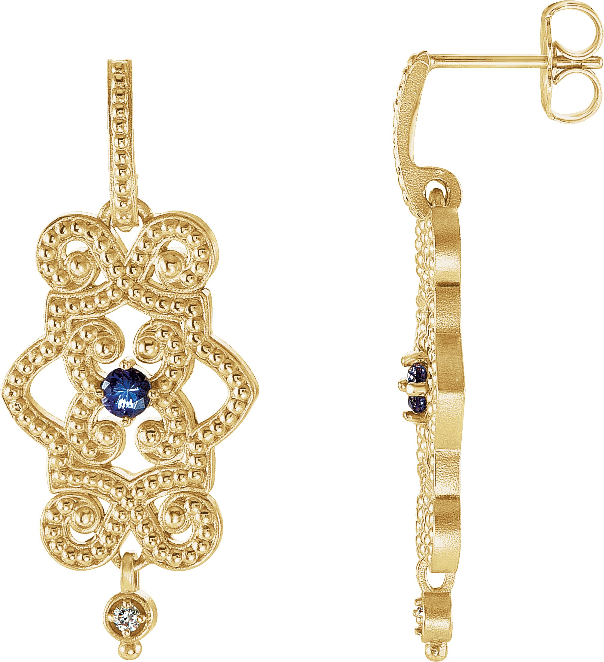14K Yellow Tanzanite and .03 CTW Diamond Granulated Design Dangle Earrings