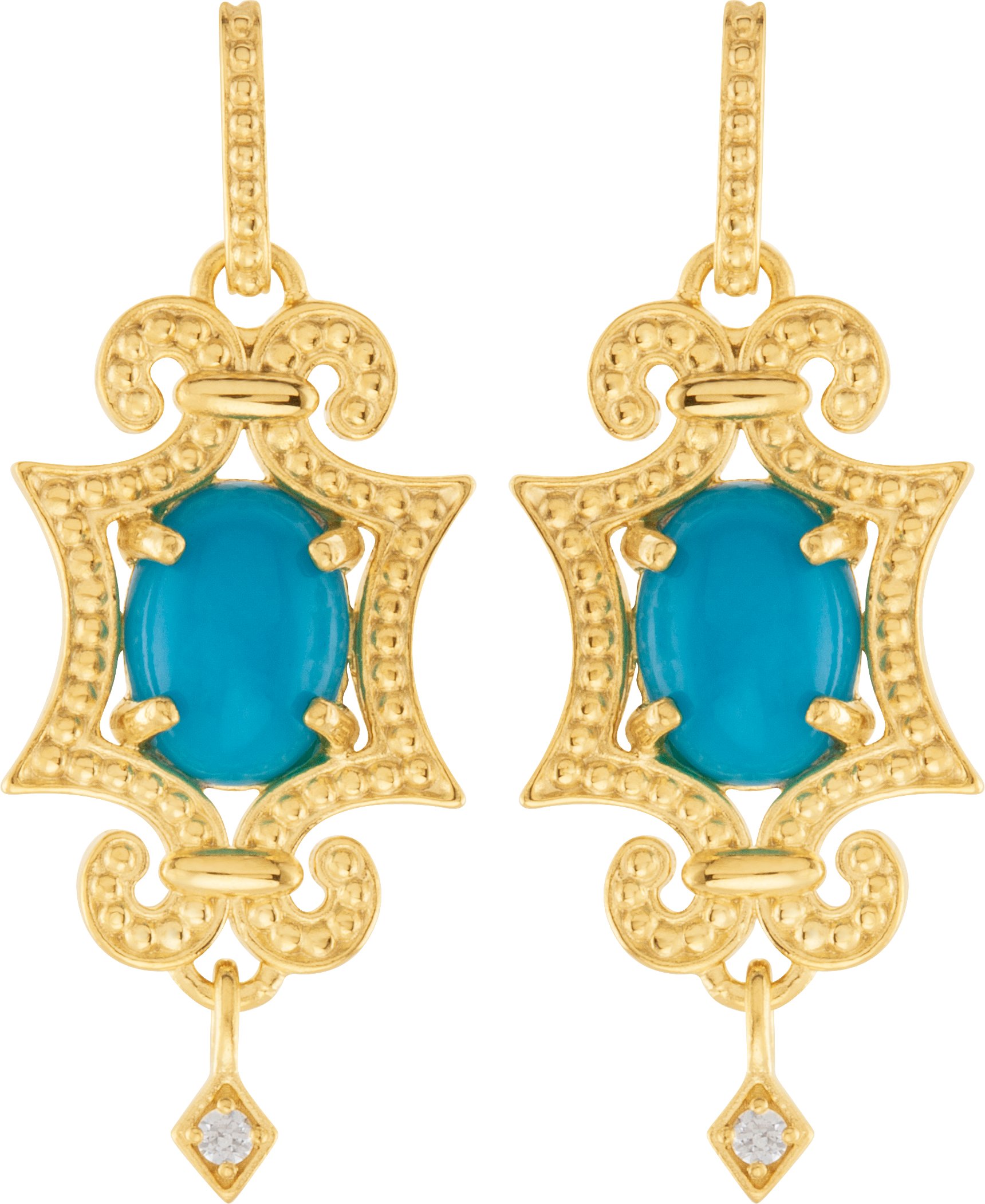 14K Yellow Turquoise and .03 CTW Diamond Earrings