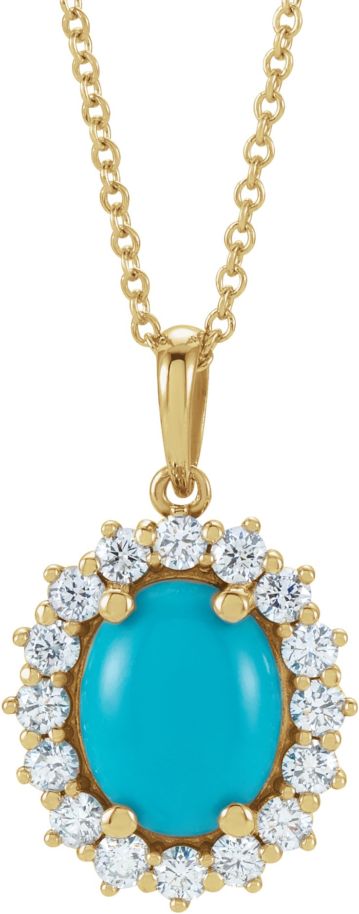 14K Yellow Turquoise & 1/2 CTW Diamond Halo Style 16 18 inch Necklace