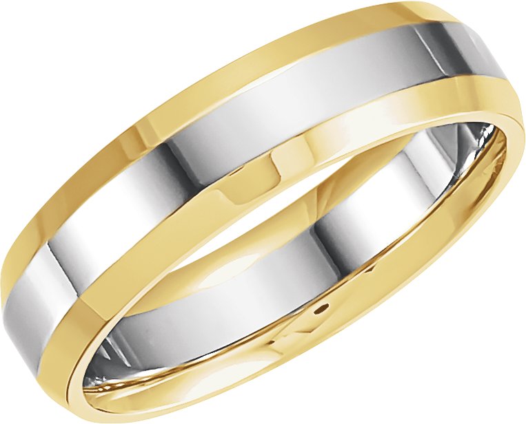 14K Yellow White 6 mm Beveled Edge Band Size 13