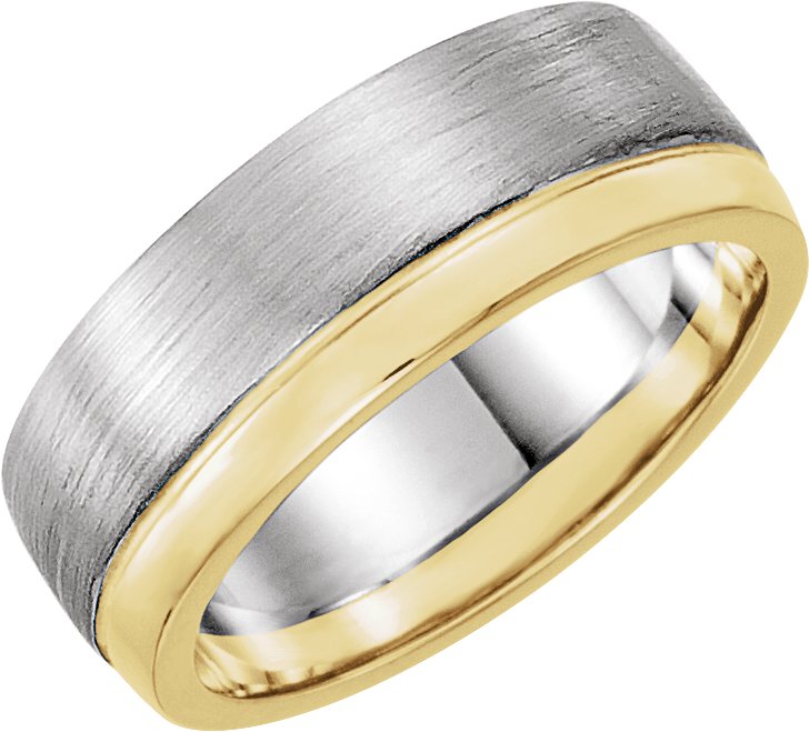14K Yellow White 6.75 mm Flat Edge Band with Polished and Satin Finish Size 9 Ref 10933297