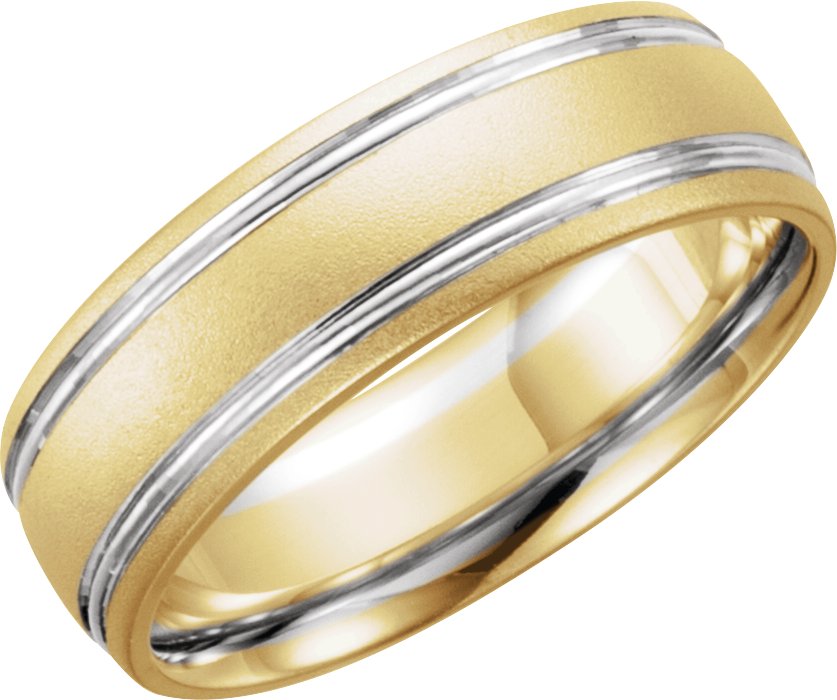 14K Yellow White 7 mm Grooved Band with Bead Blast Finish Size 11.5
