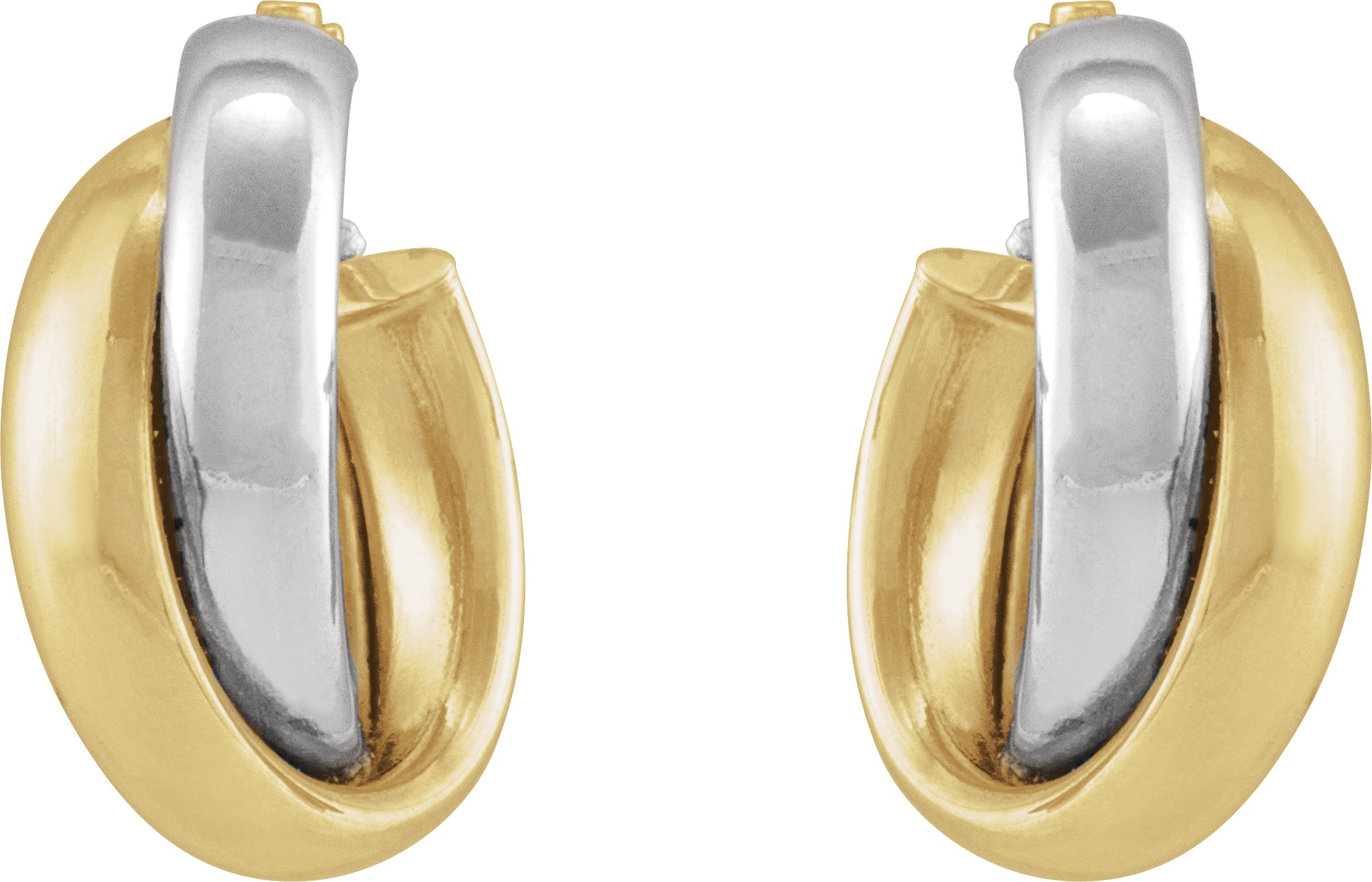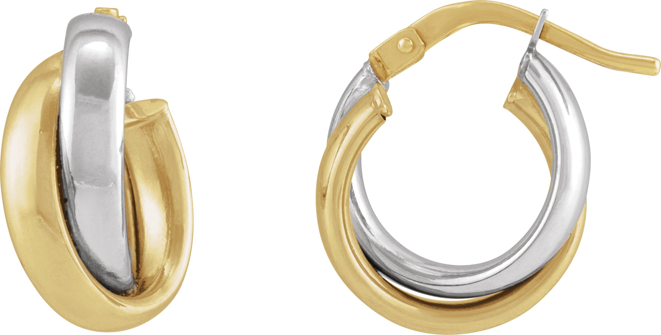 14K Yellow/White Double Tube 13 mm Hoop Earrings