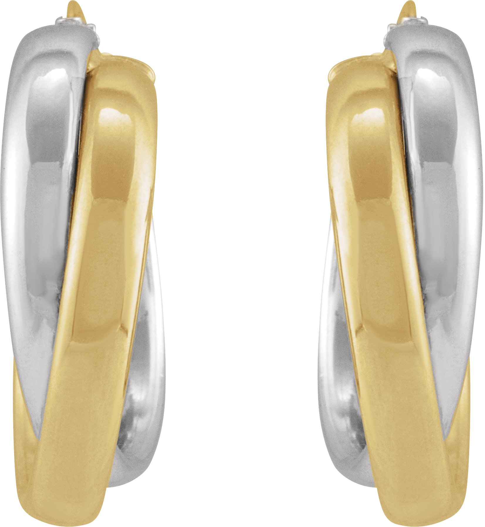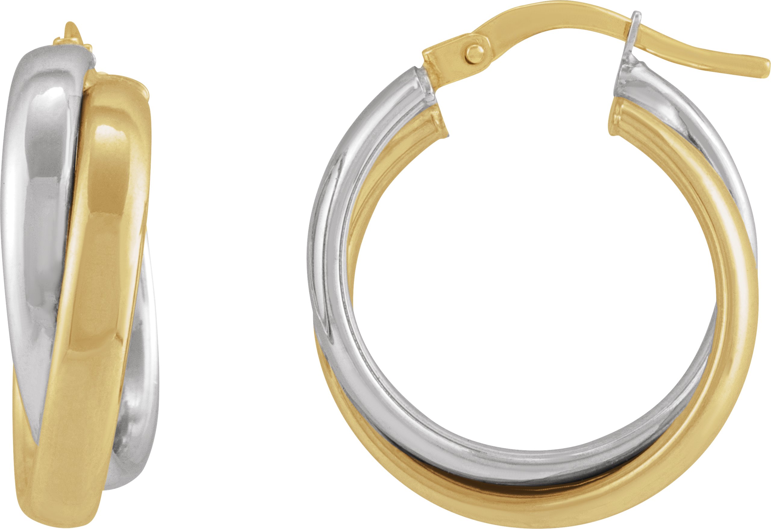 14K Yellow/White Double Tube 15 mm Hoop Earrings