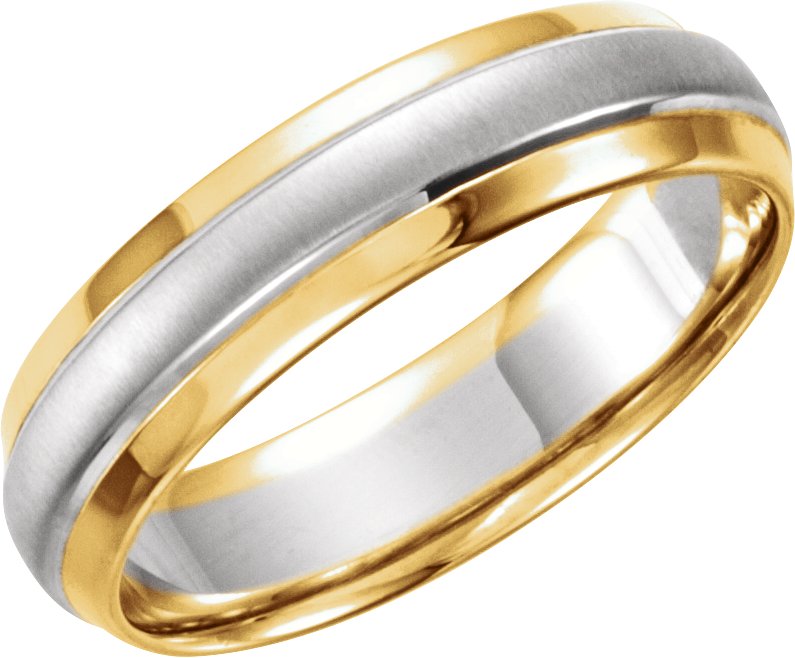 14K Yellow and White 6 mm Beveled Edge Band with Satin Finish Size 10