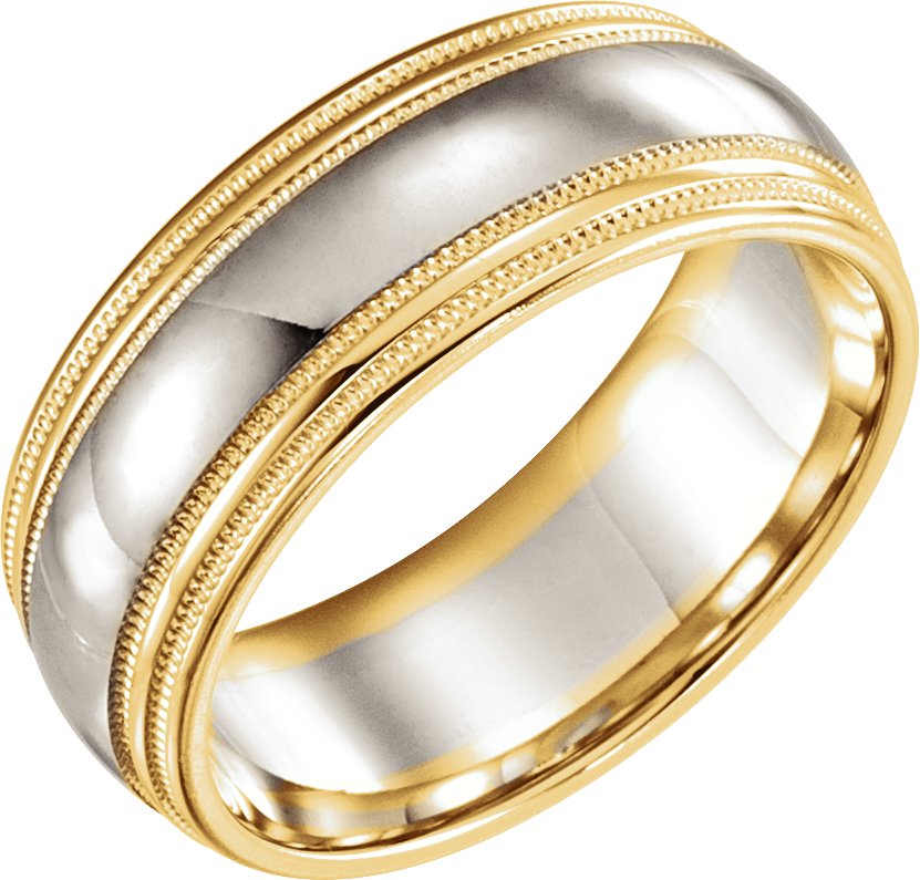 14K Yellow and White 8 mm Double Edge Band with Milgrain Size 8