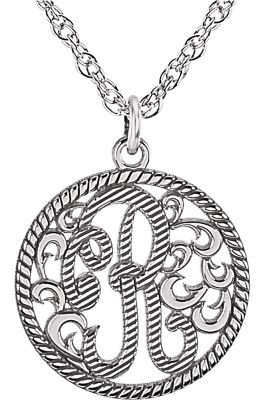 15mm Single Letter Script Monogram Necklace with Rope Border