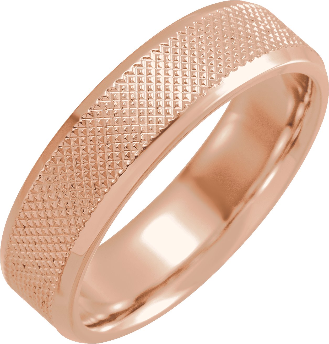 18K Rose 6 mm Knurled Beveled-Edge Band Size 18.5