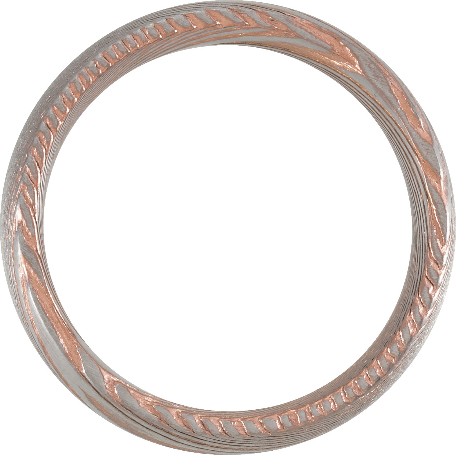 18K Rose Gold PVD Damascus Steel 8 mm Patterned Half Round Band Size 6.5