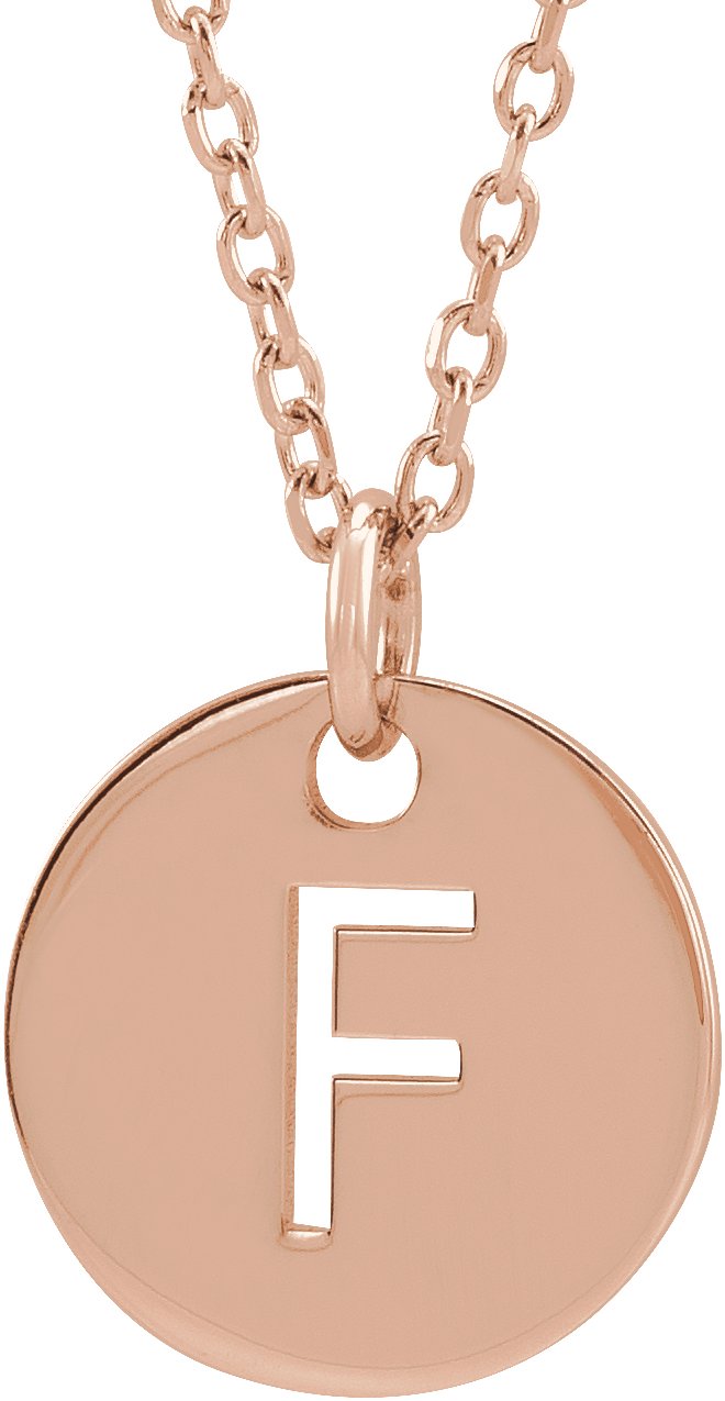 18K Rose Gold Plated Sterling Silver Initial F 10 mm Disc 16 to 18 inch Necklace Ref 17697376