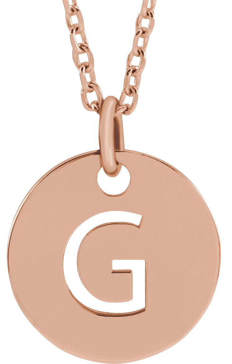 18K Rose Gold Plated Sterling Silver Initial G 10 mm Disc 16 to 18 inch Necklace Ref 17697377