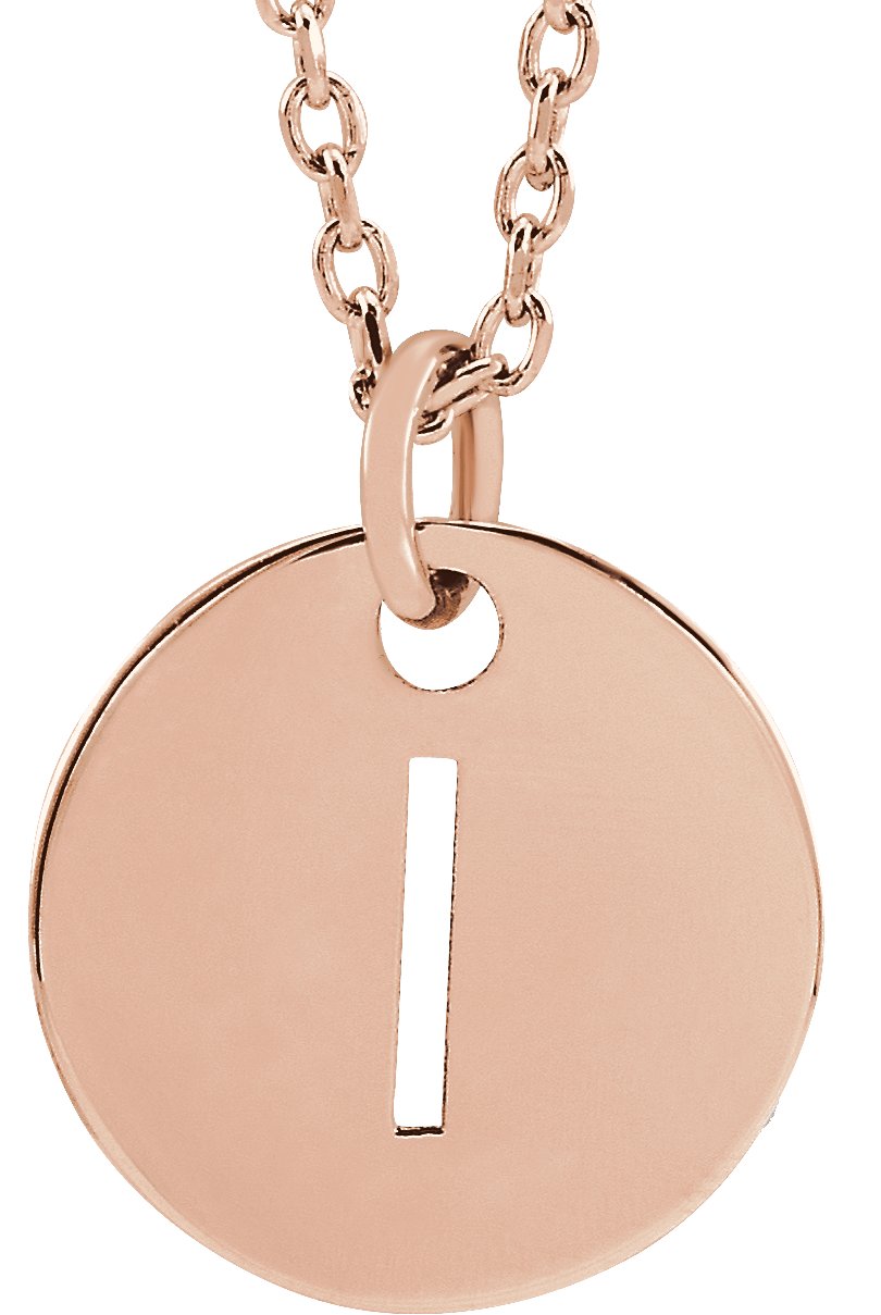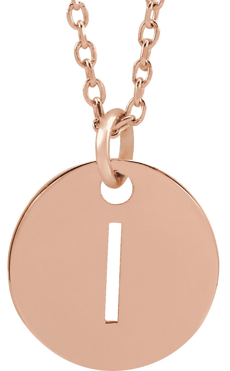 18K Rose Gold Plated Sterling Silver Initial I 10 mm Disc 16 to 18 inch Necklace Ref 17697379