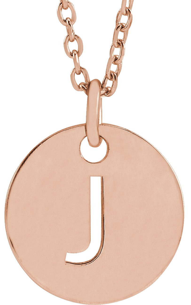18K Rose Gold Plated Sterling Silver Initial J 10 mm Disc 16 to 18 inch Necklace Ref 17697380
