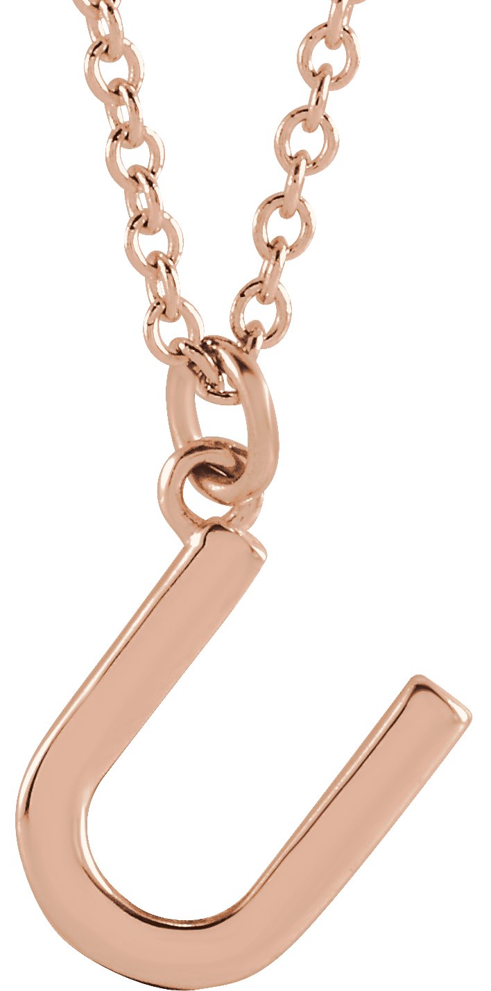 18K Rose Gold Plated Sterling Silver Initial U Dangle 18 inch Necklace