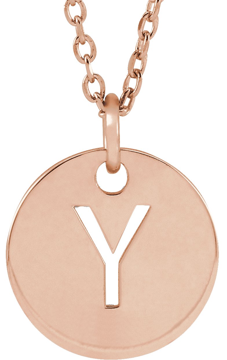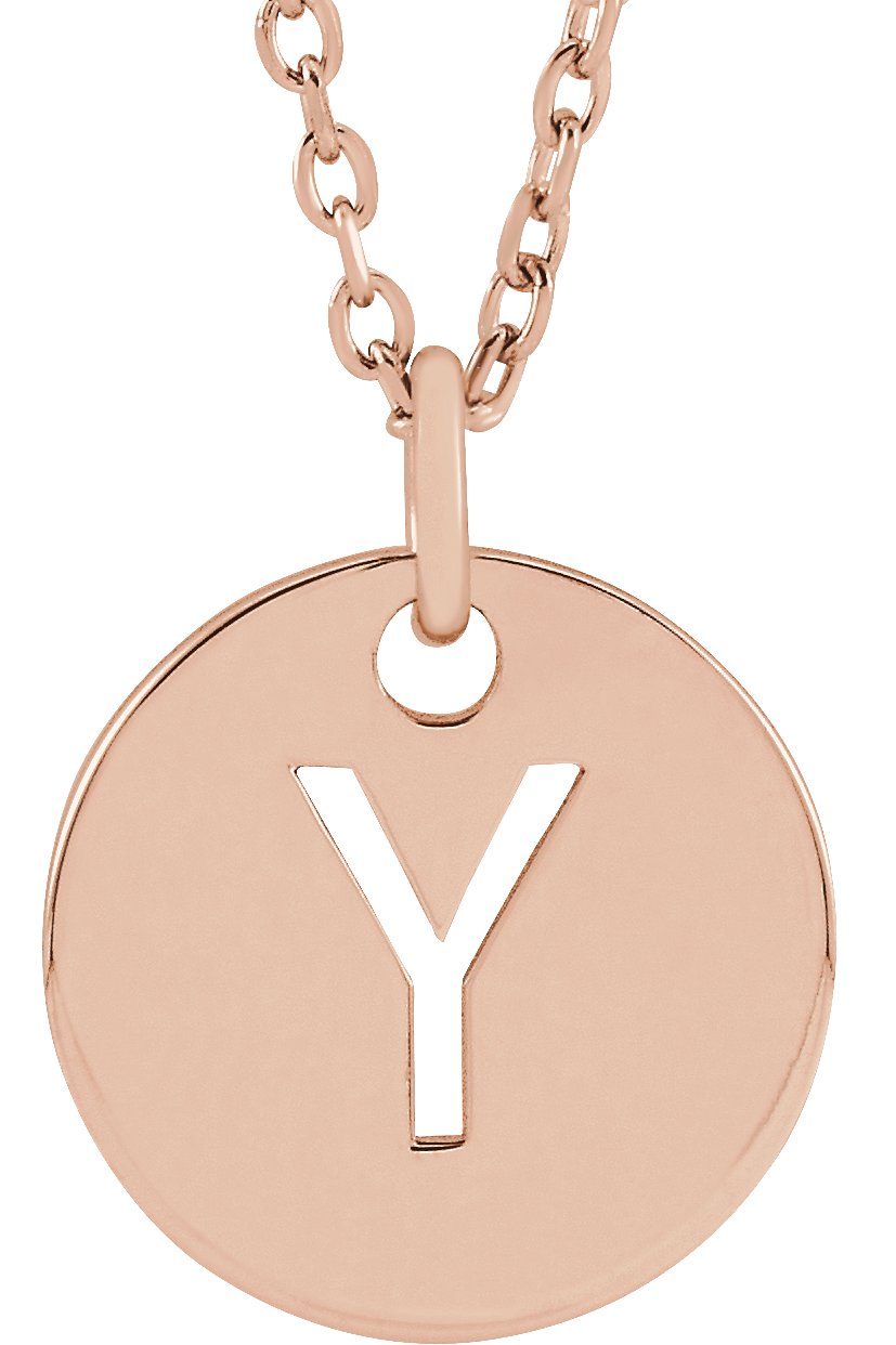 18K Rose Gold Plated Sterling Silver Initial Y 10 mm Disc 16 to 18 inch Necklace Ref 17697395