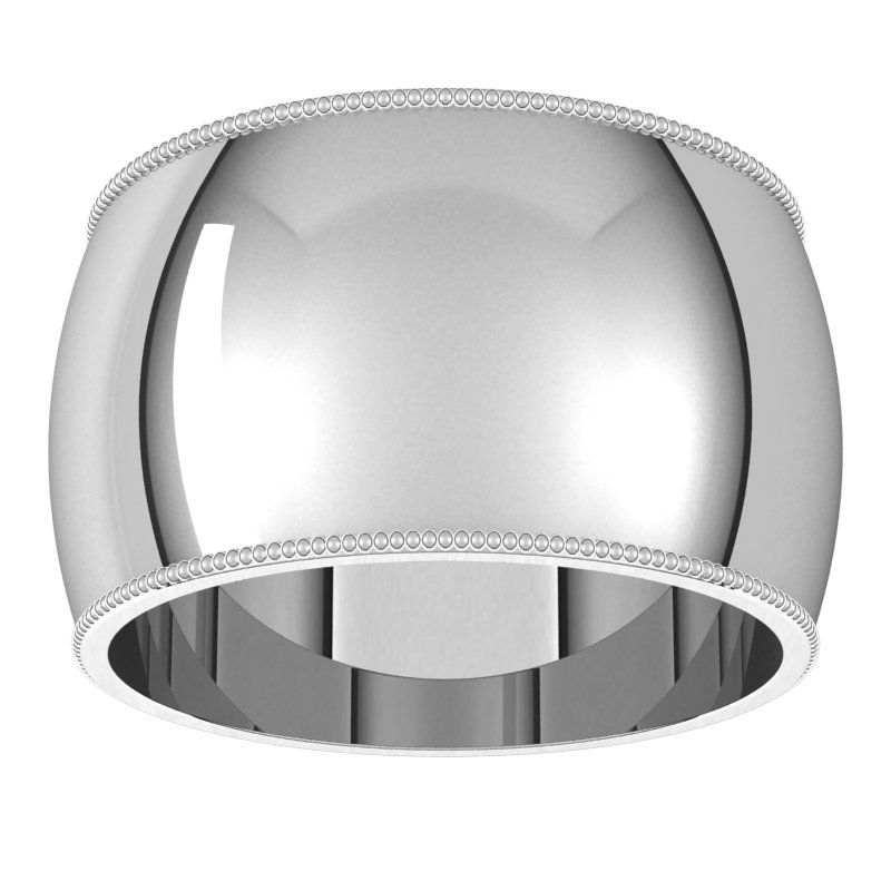 18K White 12 mm Milgrain Half Round Band Size 5.5