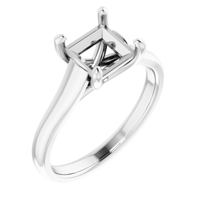 18K White 6.5x6.5 mm Square Solitaire Engagement Ring Mounting