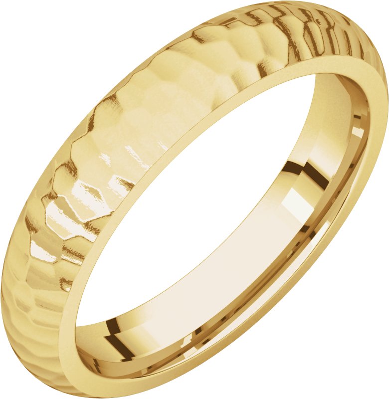 18K Yellow 4 mm Half Round Band with Hammer Finish Size 8.5