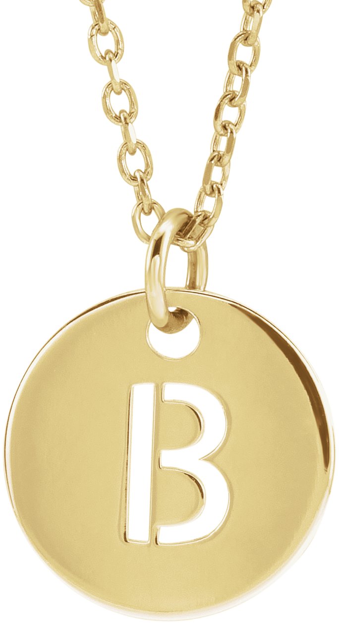 18K Yellow Gold Plated Sterling Silver Initial B 10 mm Disc 16 to 18 inch Necklace Ref 17697346