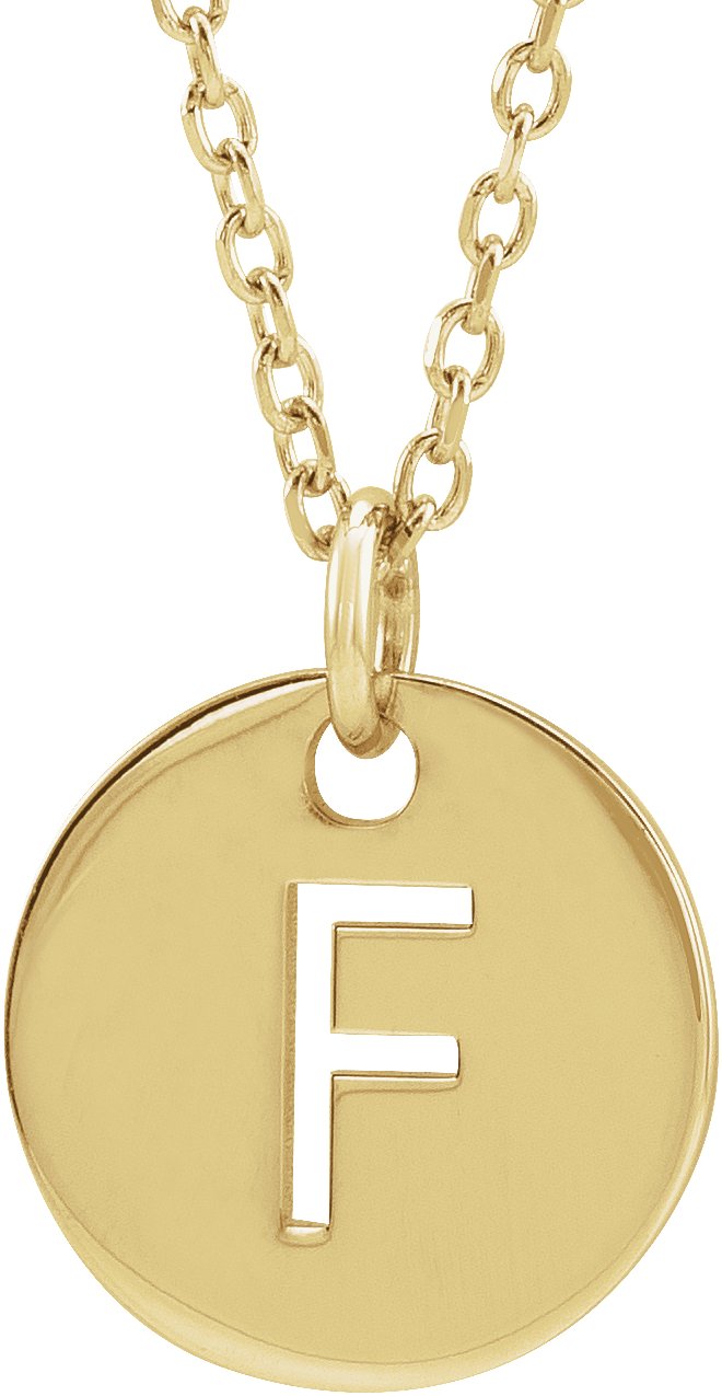 18K Yellow Gold Plated Sterling Silver Initial F 10 mm Disc 16 to 18 inch Necklace Ref 17697350
