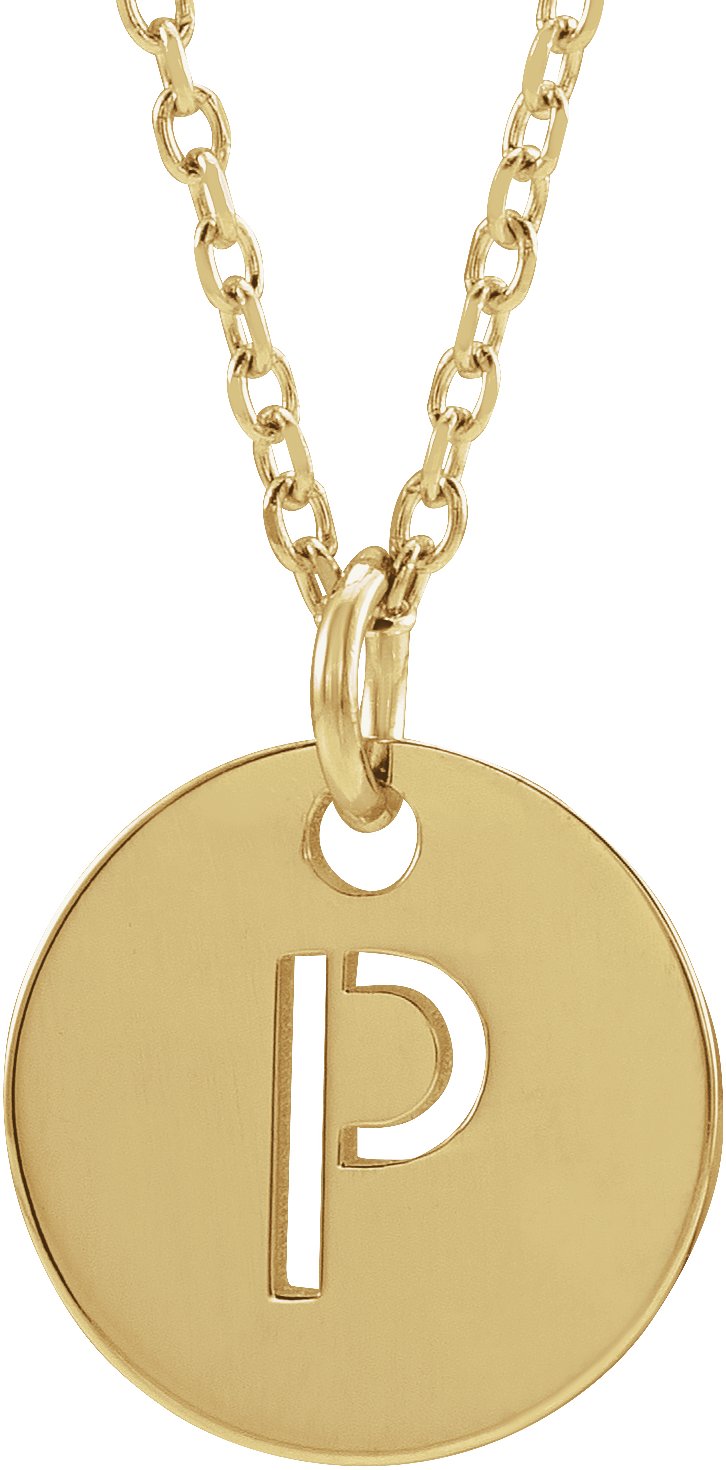 18K Yellow Gold Plated Sterling Silver Initial P 10 mm Disc 16 to 18 inch Necklace Ref 17697360