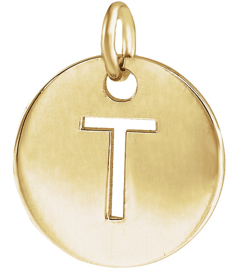 18K Yellow Gold Plated Sterling Silver Initial T 10 mm Disc Pendant Ref 17697306