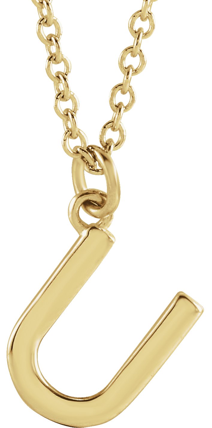 18K Yellow Gold Plated Sterling Silver Initial U Dangle 16 inch Necklace
