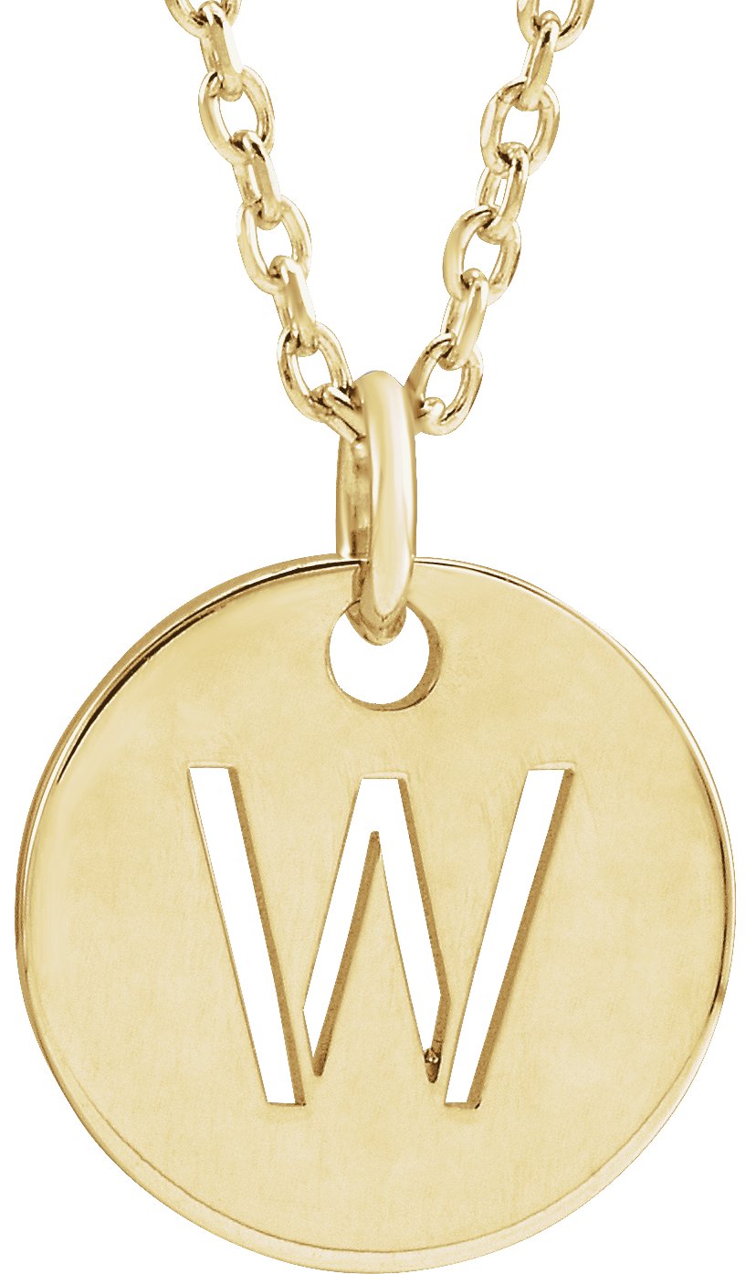 18K Yellow Gold Plated Sterling Silver Initial W 10 mm Disc 16 to 18 inch Necklace Ref 17697367