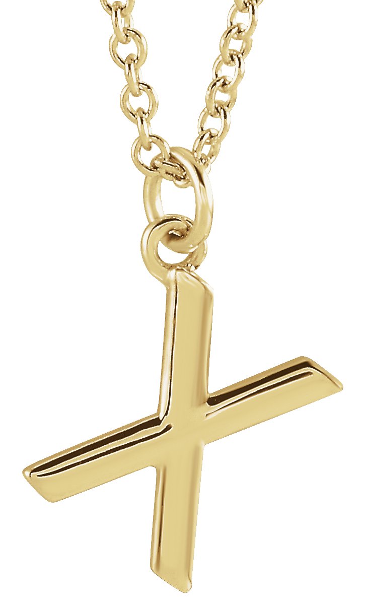 18K Yellow Gold Plated Sterling Silver Initial X Dangle 16 inch Necklace