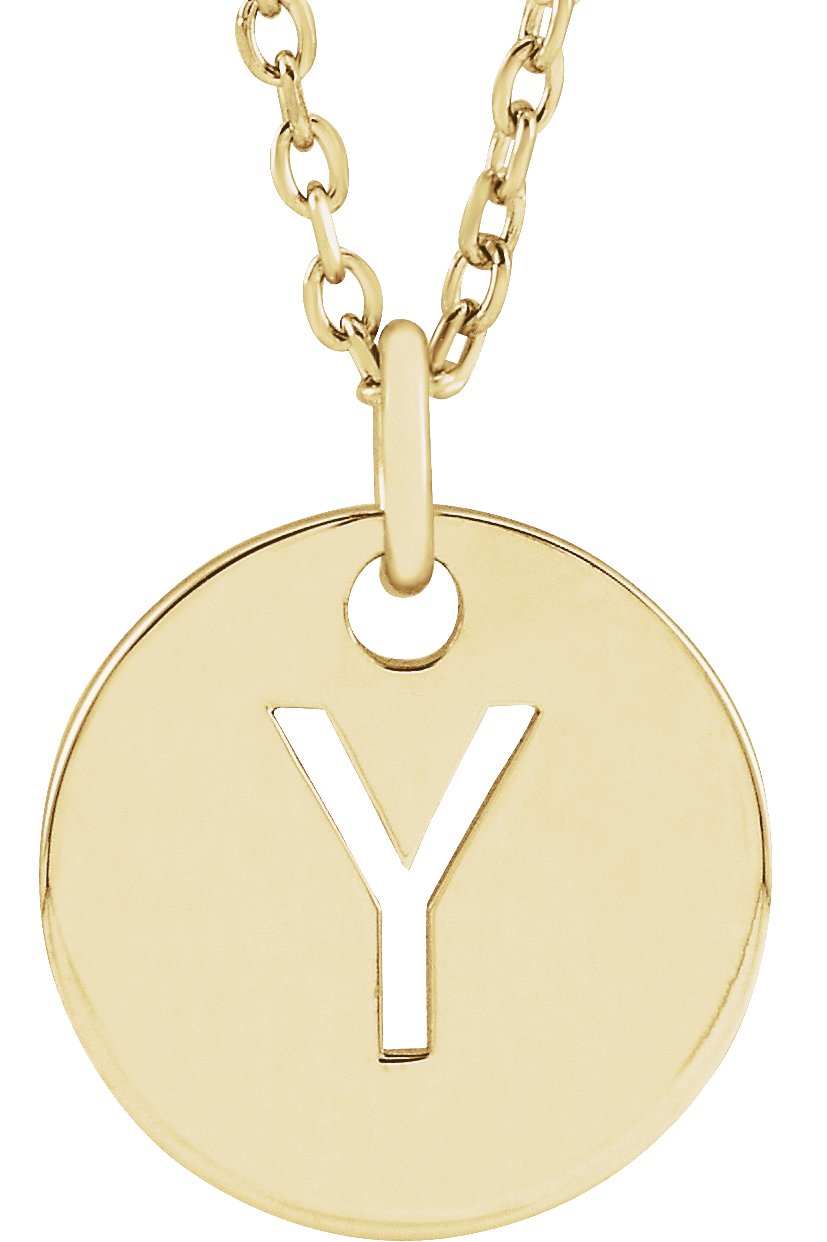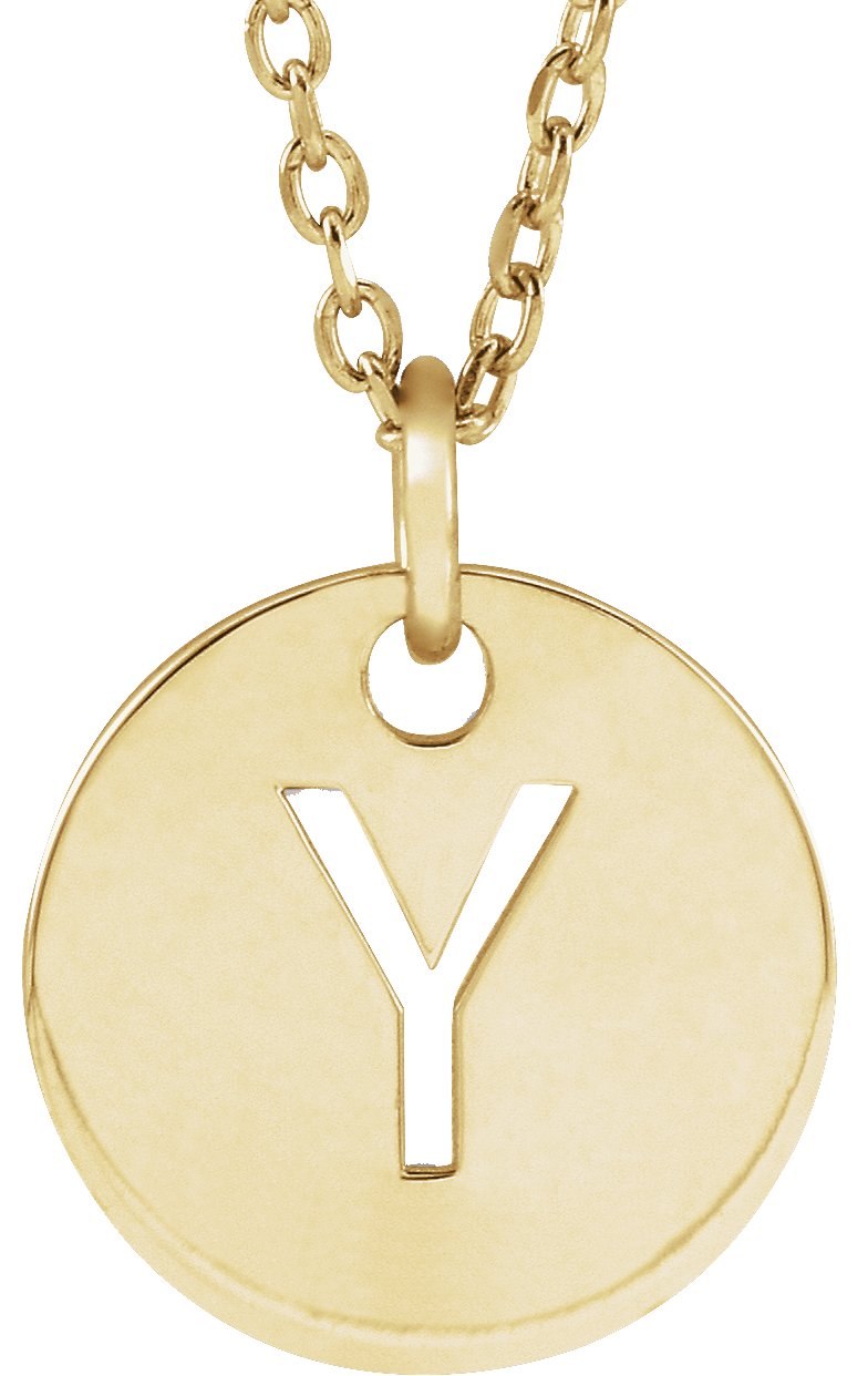 18K Yellow Gold Plated Sterling Silver Initial Y 10 mm Disc 16 to 18 inch Necklace Ref 17697369