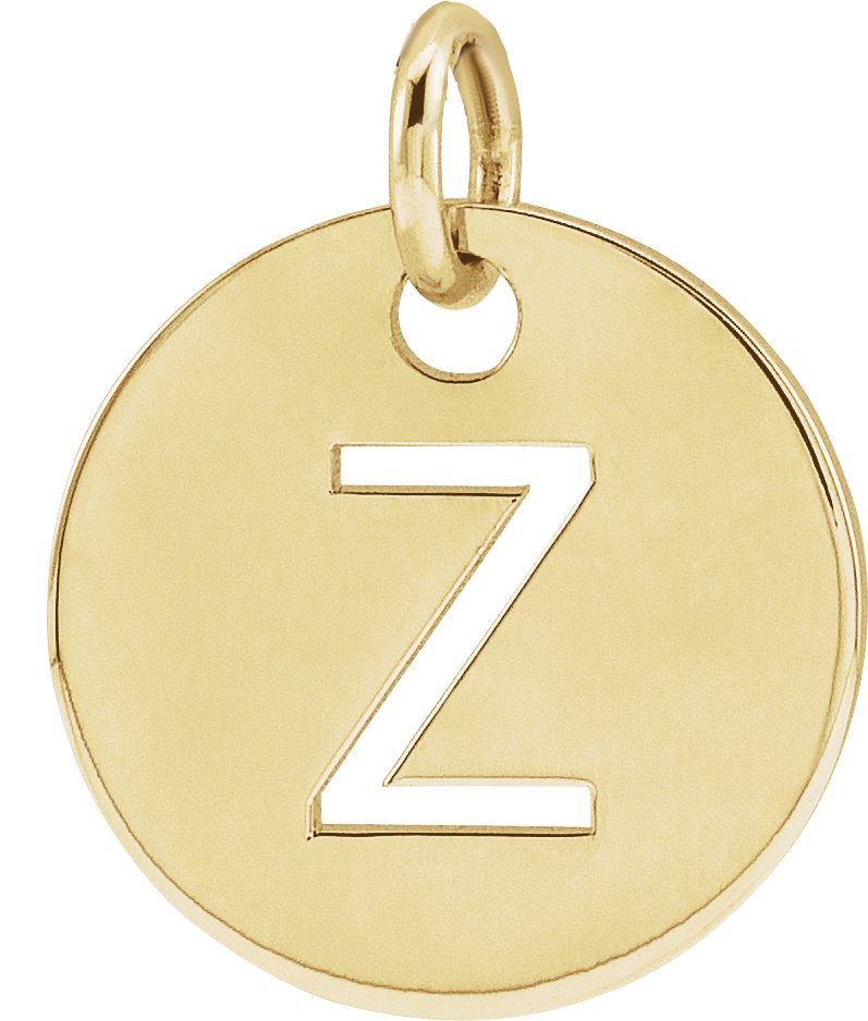 18K Yellow Gold Plated Sterling Silver Initial Z 10 mm Disc Pendant Ref 17697312